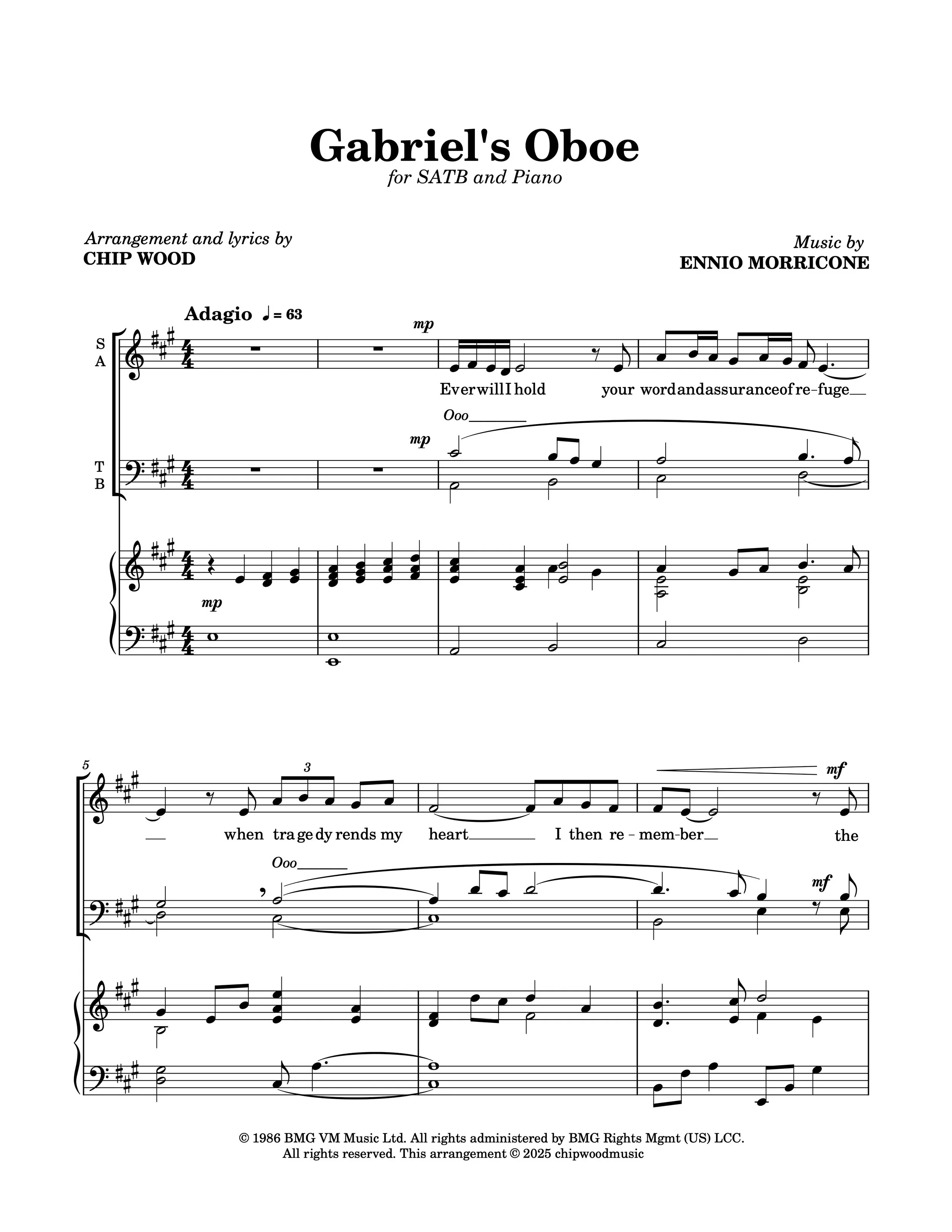 This version of the SATB arrangement begins with a 16-bar oboe solo.